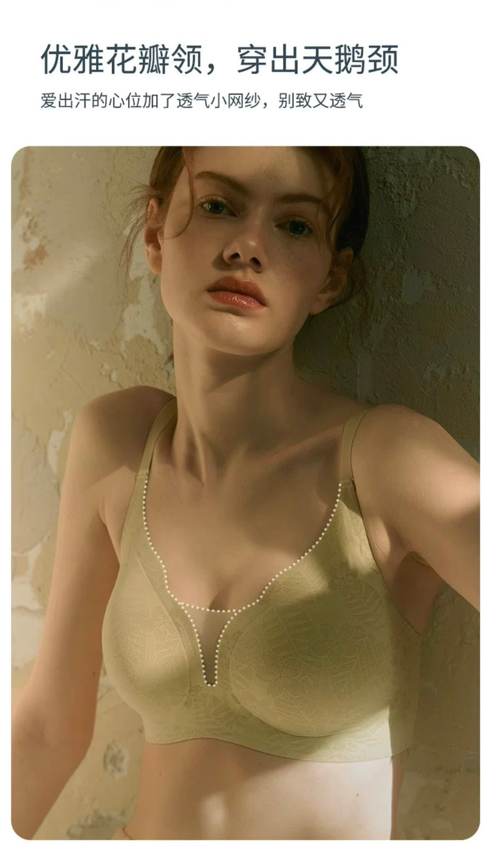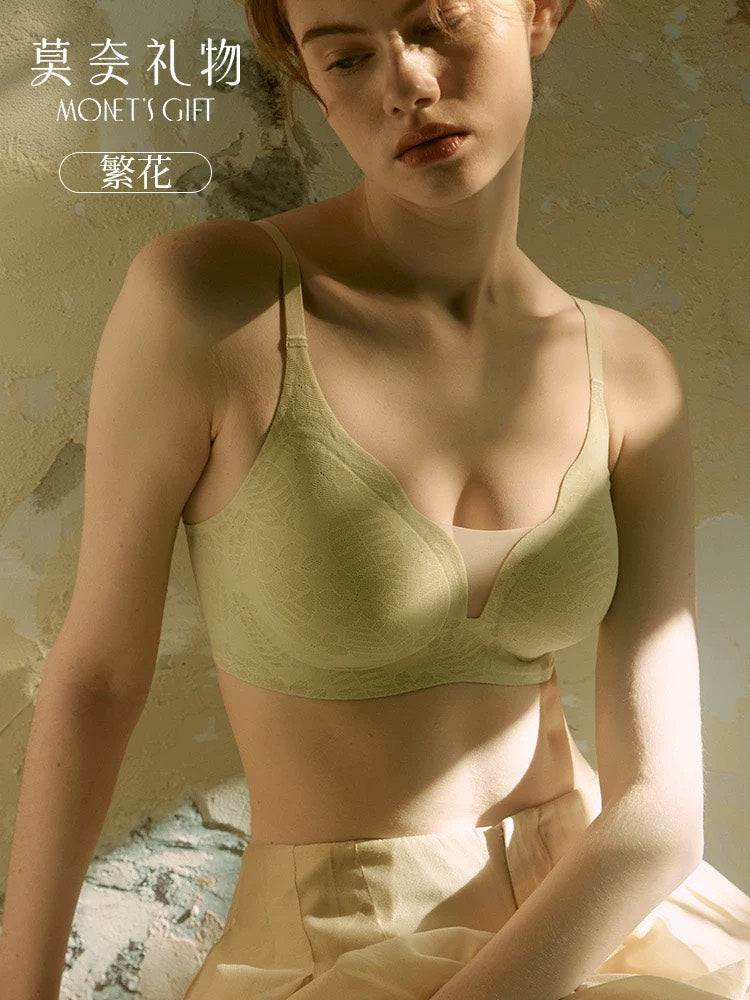 【新品】【莫奈】【花瓣領無痕蕾絲無鋼圈內衣】